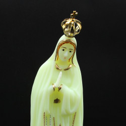 Nossa Senhora de Fátima luminosa.Coroa e brilhantes no manto.Dimensão: 7,5cm x 5cm x 26cmCódigo: 5200000805949..
